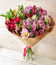 Букет «Ассорти» подкупает своей яркостью и разнообразностью цветовой палитры. Представленные здесь альстромерии разных цветов выражают хорошее отношение, дружбу и благодарность. Цветы универсальны и ненавязчивы, отлично подойдут для мужчин, в том числе коллег и друзей. Букет поможет принести извинения или порадовать человека незабываемым способом.