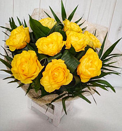 Жёлтые розы – самый радостный и яркий представитель прекрасного сорта цветов. Впечатляюще веселый внешний вид заставляет любить их миллионы людей. Даря «Букет из желтых роз», покажете радость и хорошее настроение, настроите близкого человека на позитивный лад, придадите дню больше эмоций. Цветы идеально подойдут друзьям, любимой или коллегам.